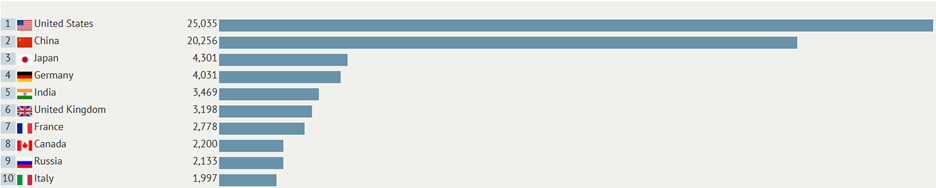 Čínská ekonomika je jedna z nejrychleji rostoucích ekonomik 21. století a nyní je druhou největší ekonomikou světa, která v roce 2022 vyprodukovala hodnotu HDP 20,25 bilionu USD. Světovým lídrem jsou stále USA s HDP 25,03 bilionu USD.