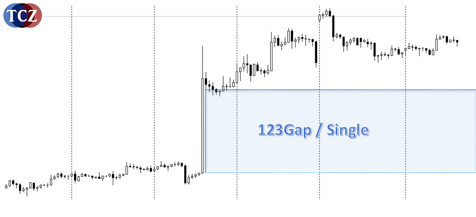 Protože již všichni známe pattern 123Gap, jistě nás všechny napadne využít dlouhou svíci právě tímto způsobem. Trh velmi rád reaguje na obě dvě hranice, tedy horní a spodní stranu vyznačeného obdélníka.
