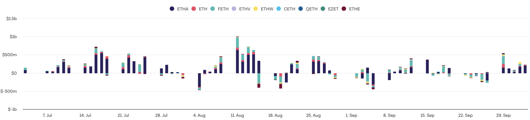 V srpnu dokonce došlo ke zdvojnásobení objemu prostředků ve fondu a ethereum si následně připsalo nové historické maximum 4946 USD, čímž překonalo rekord z listopadu 2021.