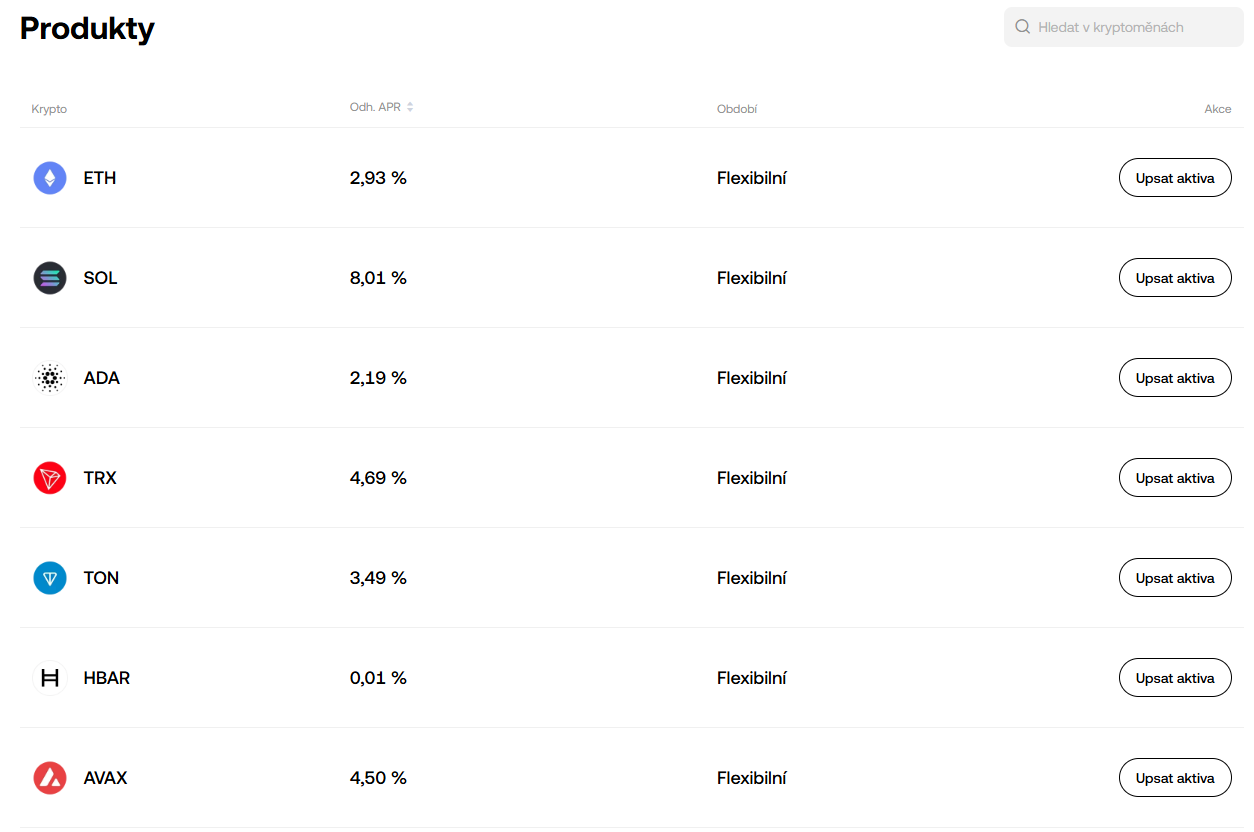 Podporované kryptoměny lze také stakovat v programu OKX Earn, což umožňuje zvýšit roční zhodnocení aktiv.