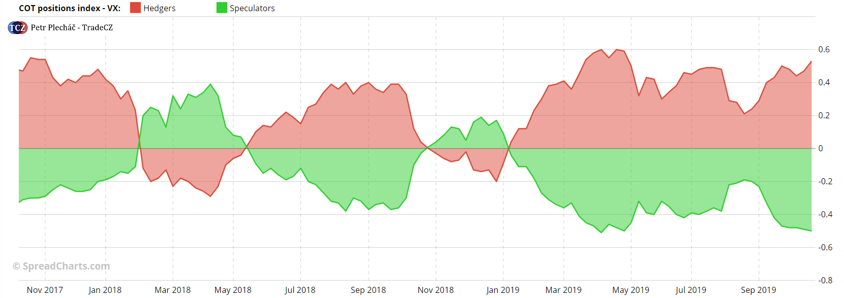Pravdou ovšem zůstává, že se velcí spekulanti i hedgers nacházejí na VIXu, indikátoru strachu a nervozity, na svých dlouhodobějších maximech.