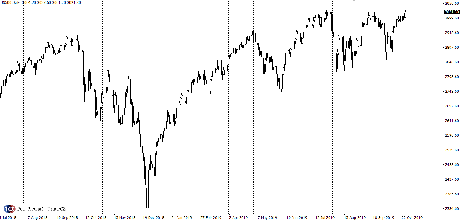 Americký akciový index SP500 zavřel tento týden blízko svých historických maxim. Za růstem stojí optimismus ohledně pokračujícího obchodního jednání mezi USA a Čínou.