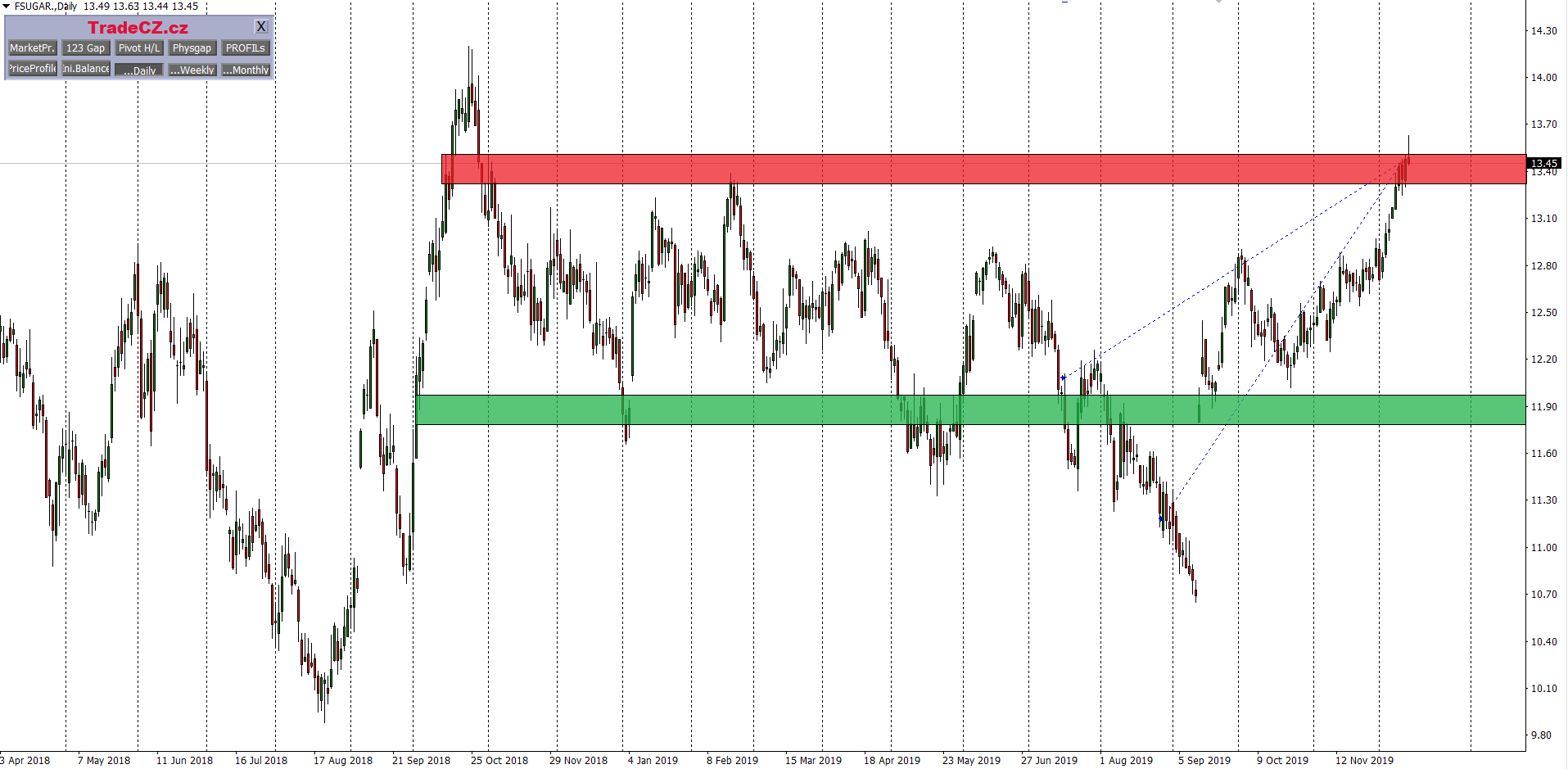 Růstu ceny cukru také dopomohl růst ceny ropy, která se nyní nachází na resistenci a její oslabení by mohlo znamenat také korekci na cukru.