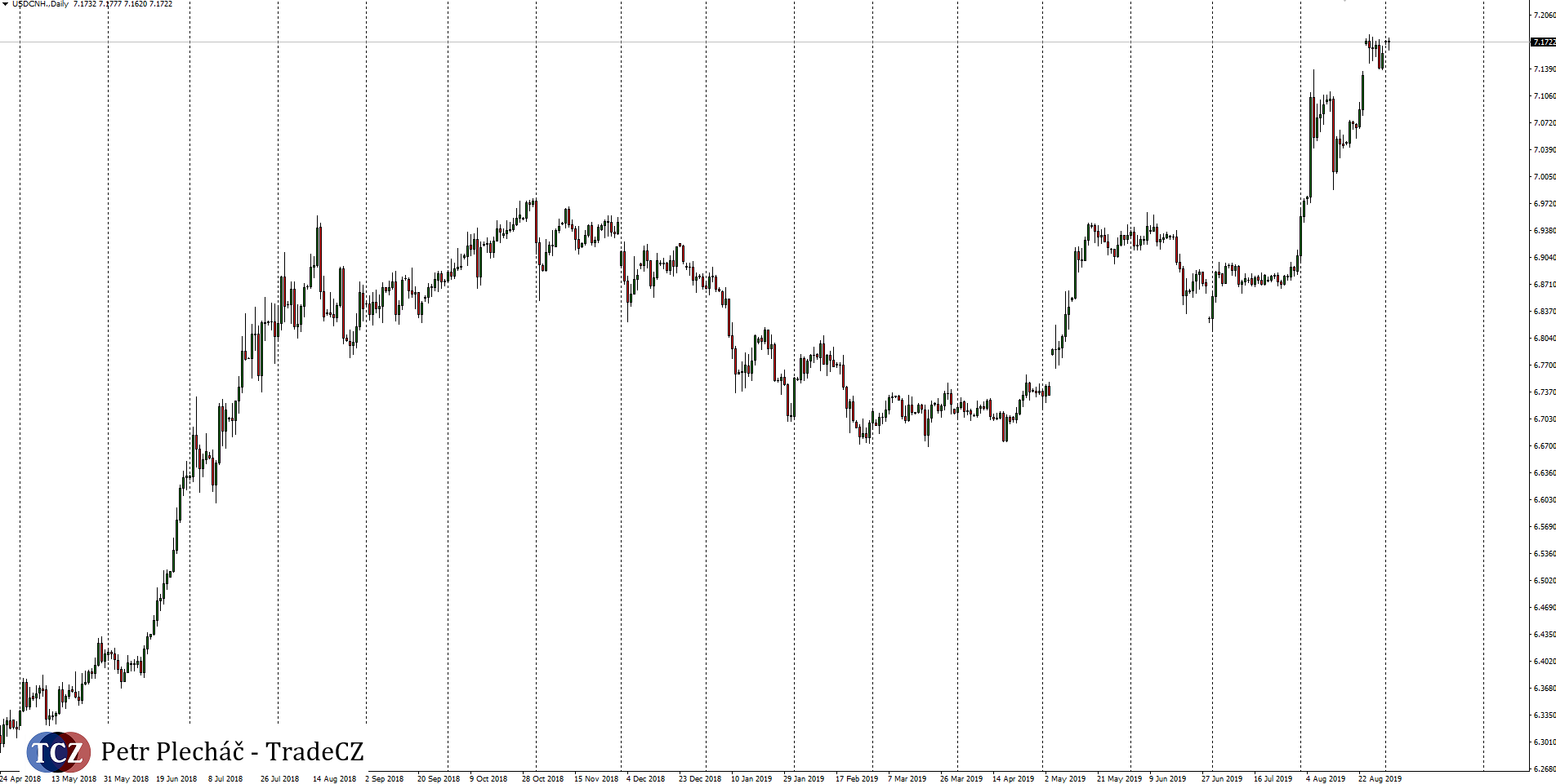 O víkendu a dnes ráno reportovala Čína data výrobního PMI. Čísla z dnešního rána trochu upravila silně negativní výhled z víkendu. Čínský juan (Renminbi) dál oslabuje a měnový pár USDCNH zažívá růstovou rally.