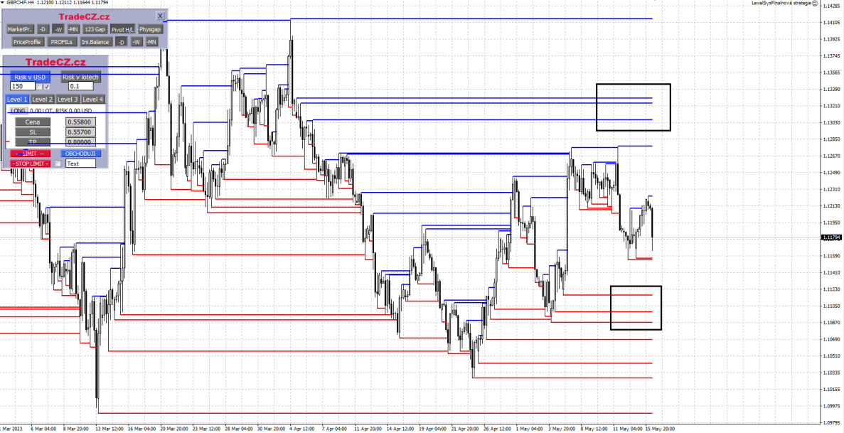 Stop-loss hunting je založen právě na vlastnosti trhu vybírat nebo testovat likvidní oblasti, takže v PMTrading víme dopředu, kam trh půjde a kde bude s vysokou pravděpodobností reagovat. Na obrázku níže jsou vyznačené shluky likvidních oblastí, které trh dříve nebo později bude mít tendenci vyplnit.