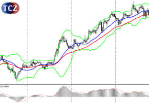 - Bollinger Bands (základní nastavení 21, 2, 0)