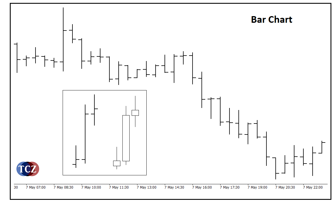 Bar chart byl nejvyužívanějším typem grafu do příchodu svíčkového grafu, který je pro většinu obchodníků čitelnější.