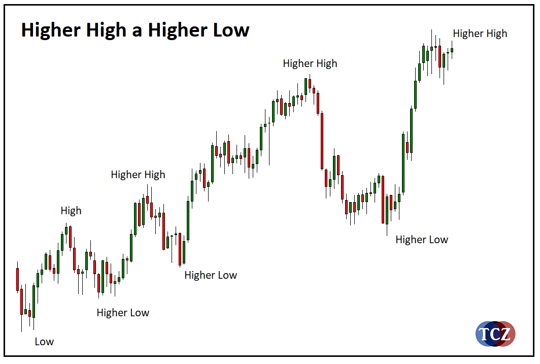 Vyšší low představuje pro obchodníka trendový pohyb směrem vzhůru. Vyšší low mohou být spojena trendovou linií pro stanovení supportní úrovně.