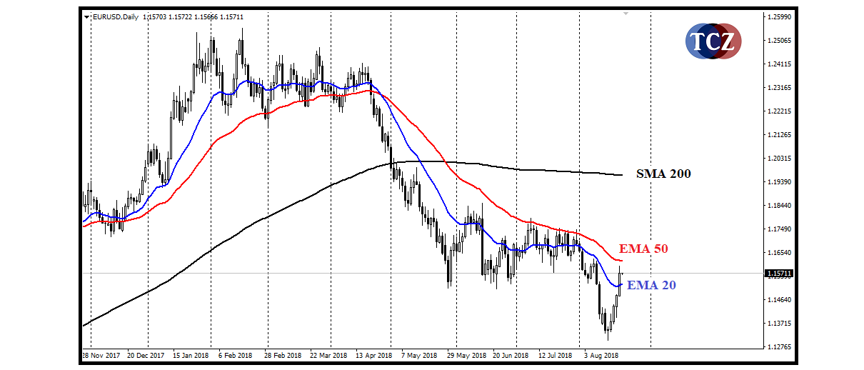 MA je v grafu zobrazen formou linií, které představují průměr ceny (jednoduchý či vážený) za určité stanovené období.