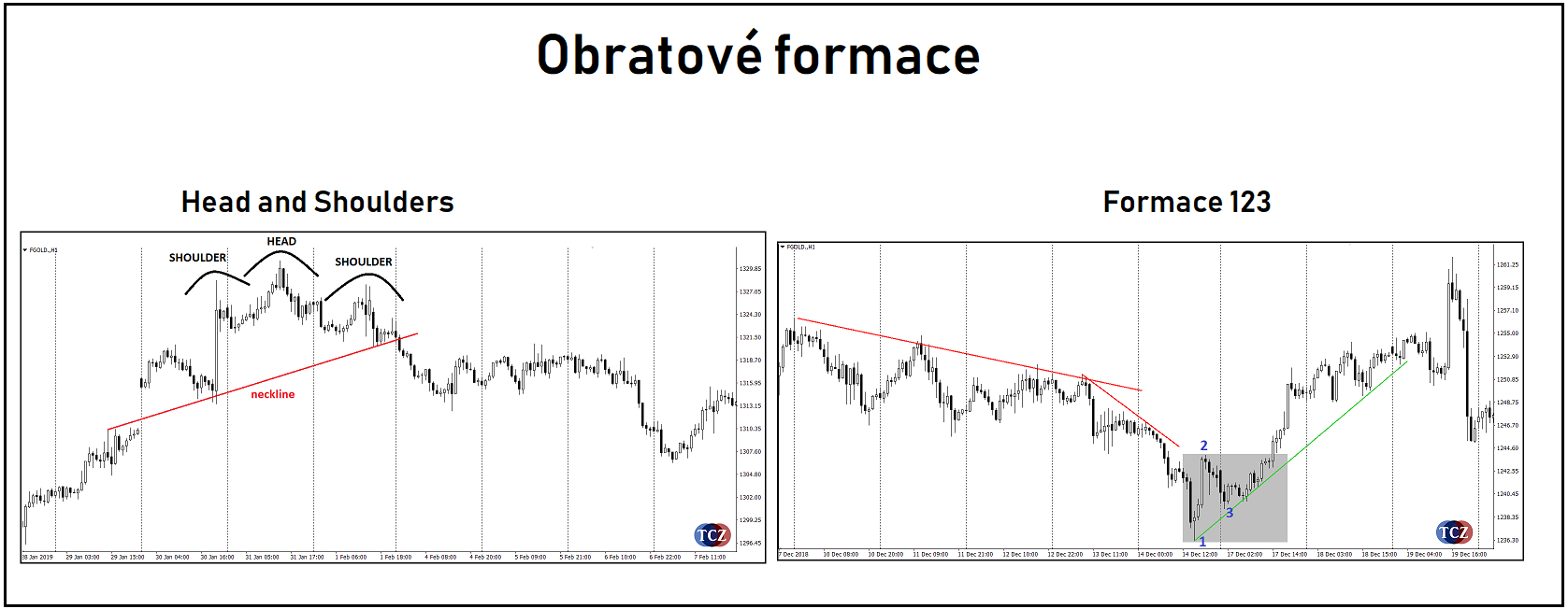 Mezi nejznámější obratové formace patří Formace 123 nebo Head and Shoulders.