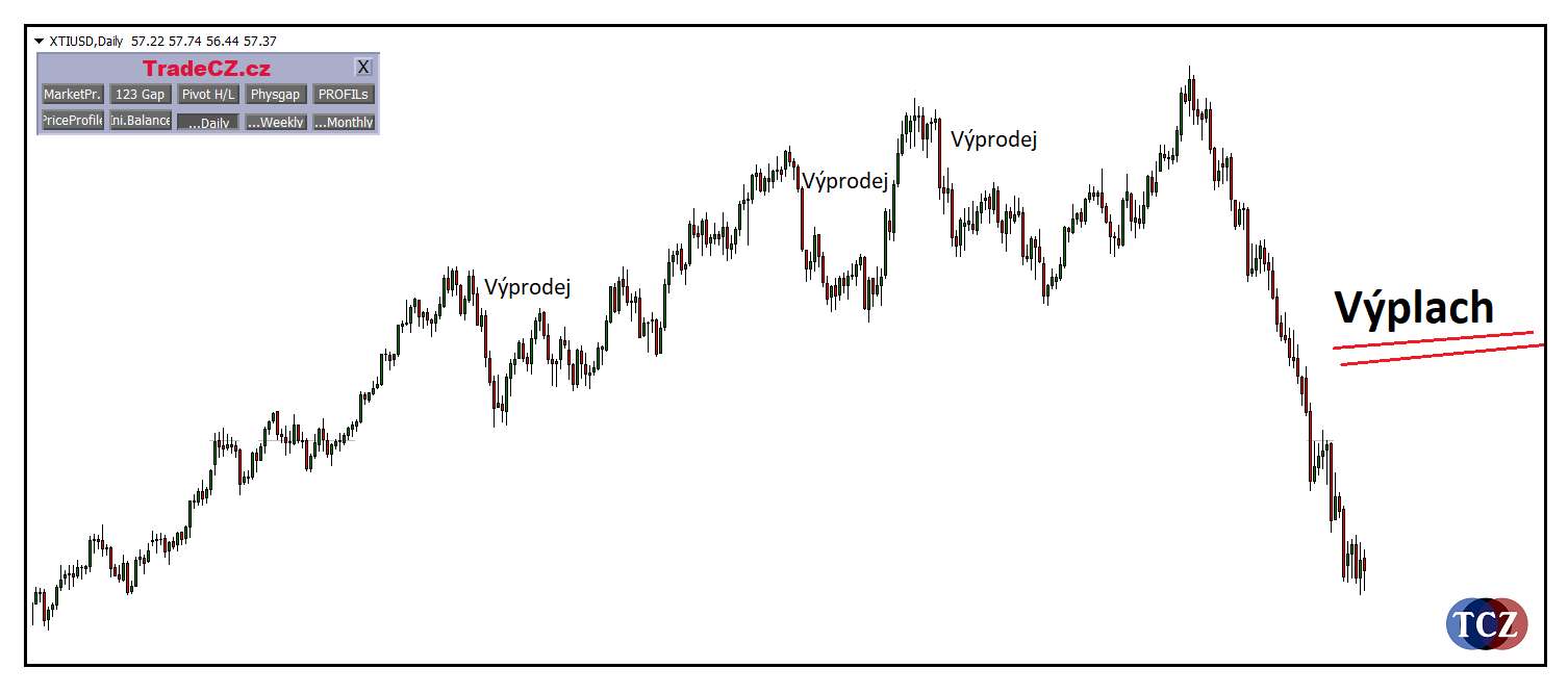 Výprodejem označujeme takovou situaci na trhu, kde dochází k výraznému oslabování daného instrumentu.
