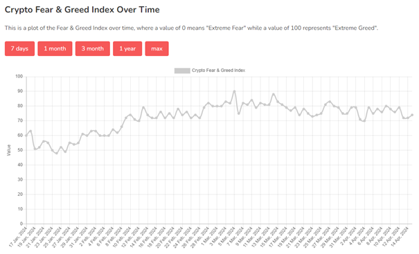 Trochu odlišný pohled dává metrika „Fear and Greed Index“. To je specifický veřejný nástroj, jenž pomocí mnoha vstupů zjednodušuje sentiment na trzích do jednoho čísla. Osciluje mezi 0 až 100, s tím, že 0 reprezentuje absolutní strach a 100 zase chamtivost. Ve chvíli psaní textu se pohybuje po krátkém propadu o víkendu na stupni 74. To znamená nejen neobvyklé nadšení z růstu posledních týdnů, ale taktéž prostor pro střednědobou korekci.