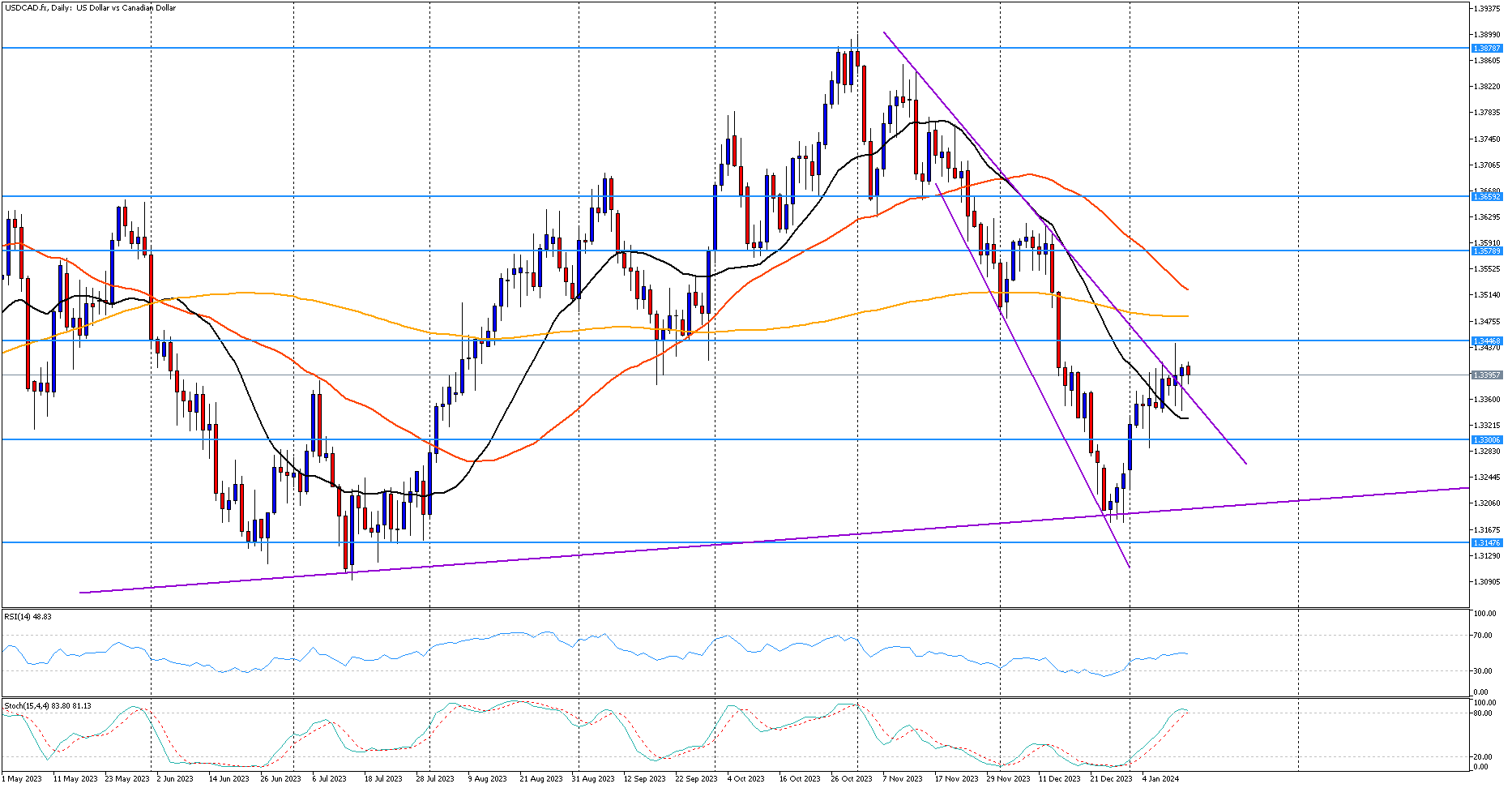 USD/CAD se navzdory mírnému pozitivnímu překvapení v podobě čtvrtečních údajů o inflaci v USA nedokázal vyšplhat do oblasti 1,3400 a zůstal pod vzestupnou trendovou linií z listopadu.