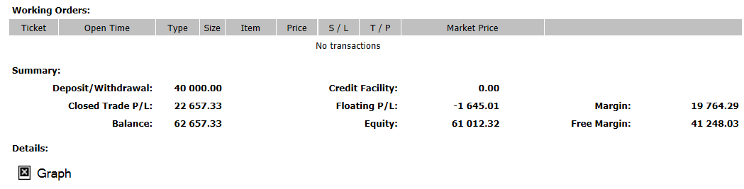 Založil jsem si proto reálný účet, na který jsem vložil celkem 40 000 Kč. Kapitál, na který dosáhne většina obchodníků a se kterým se již dá na trzích bezpečně pracovat. Tím bezpečně prosím rozumějte s možností dodržování základních pravidel money managementu, ne, že byste o tyto finanční prostředky nemohli přijít.