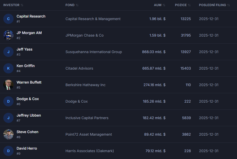 - přehled o tom, co dělají insideři, instituce i politici.