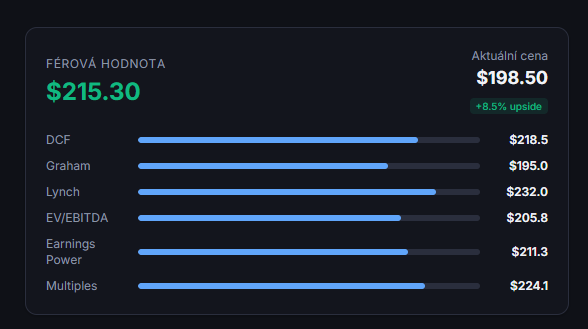 Výsledek? Investor okamžitě vidí, jestli je akcie podhodnocená, nadhodnocená, nebo férově oceněná.