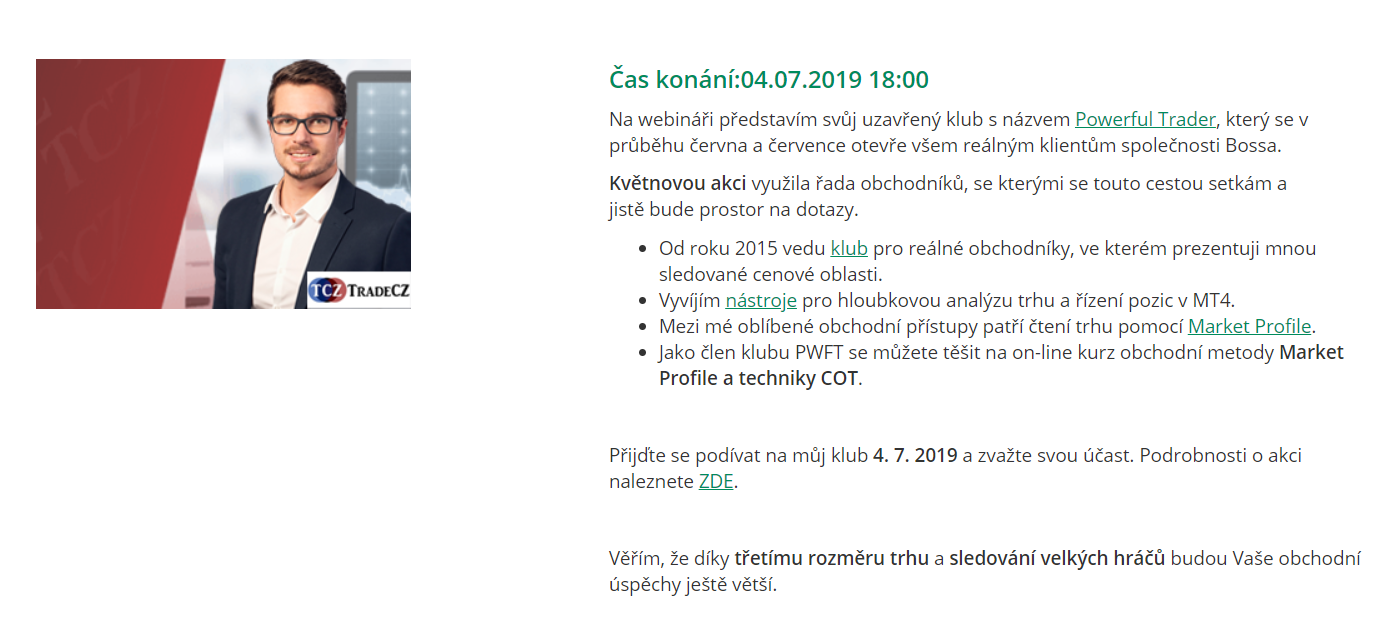 Srdečně Vás zvu k dalšímu webináři o Powerful Trader klubu.