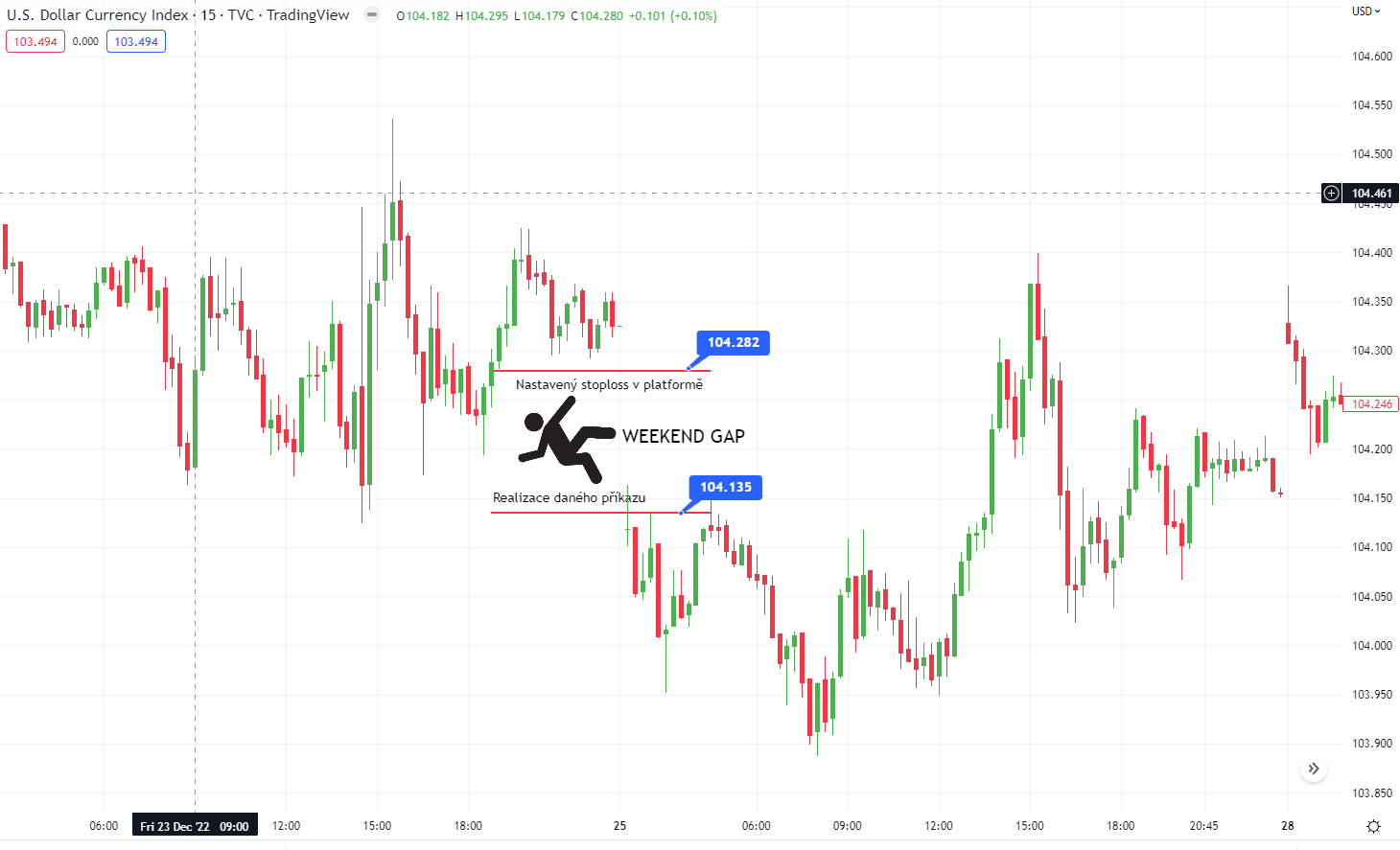 Slippage/Skluz – Skluz nastane v případě, když je pozice uzavřena na jiné hodnotě, než byl nastaven stop loss nebo take profit. Stává se nejčastěji při důležitých zprávách, nízké likviditě nebo při držení pozic přes víkend, kdy trh udělá „gap„. V průběhu covidu v roce 2020 jsme mohli být svědky častých skluzů na zlatě.